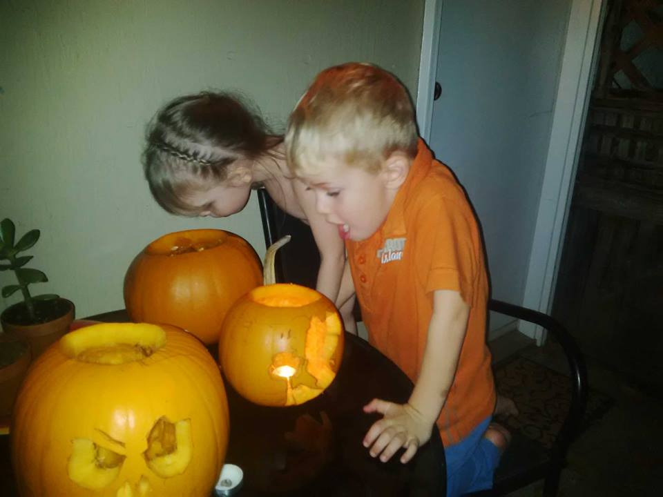 daughter calling in on Skype to join in the noisy, chaotic fun. Carving pumpkins, making a Thai dinner to